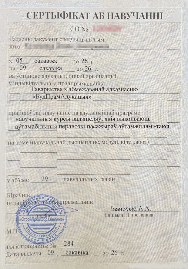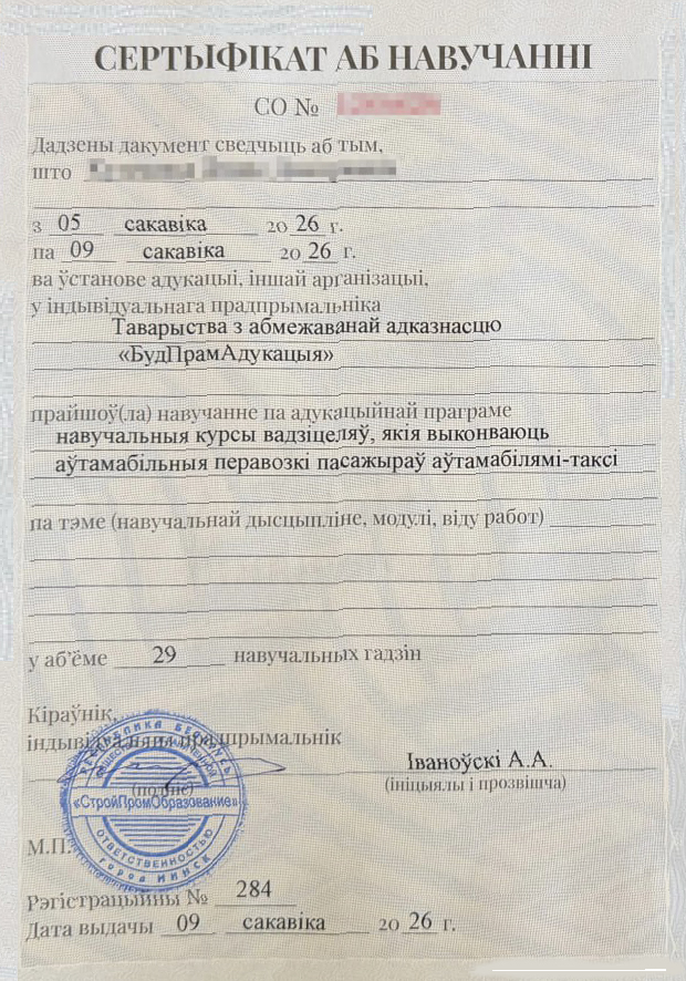 Проводим курсы такси с выдачей сертификата об обучении, необходимого для работы и включения в реестр автомобильных перевозок пассажиров в нерегулярном сообщении. Стоимость 60 р, быстрые сроки обучения. Дистанционно. Оплата по ЕРИП. Офис в Минске. Работаем по всей Беларуси.